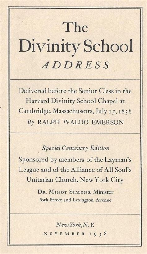 Divinity School Address Kindle Editon By Click Button. Divinity School Address it’s easy to recommend a new book category such as Novel, journal, comic, magazin, ect. You see it and you just know that the designer is also an author and understands the challenges involved with having a good book. You can easy klick for detailing book and you can read it online, even you can download it